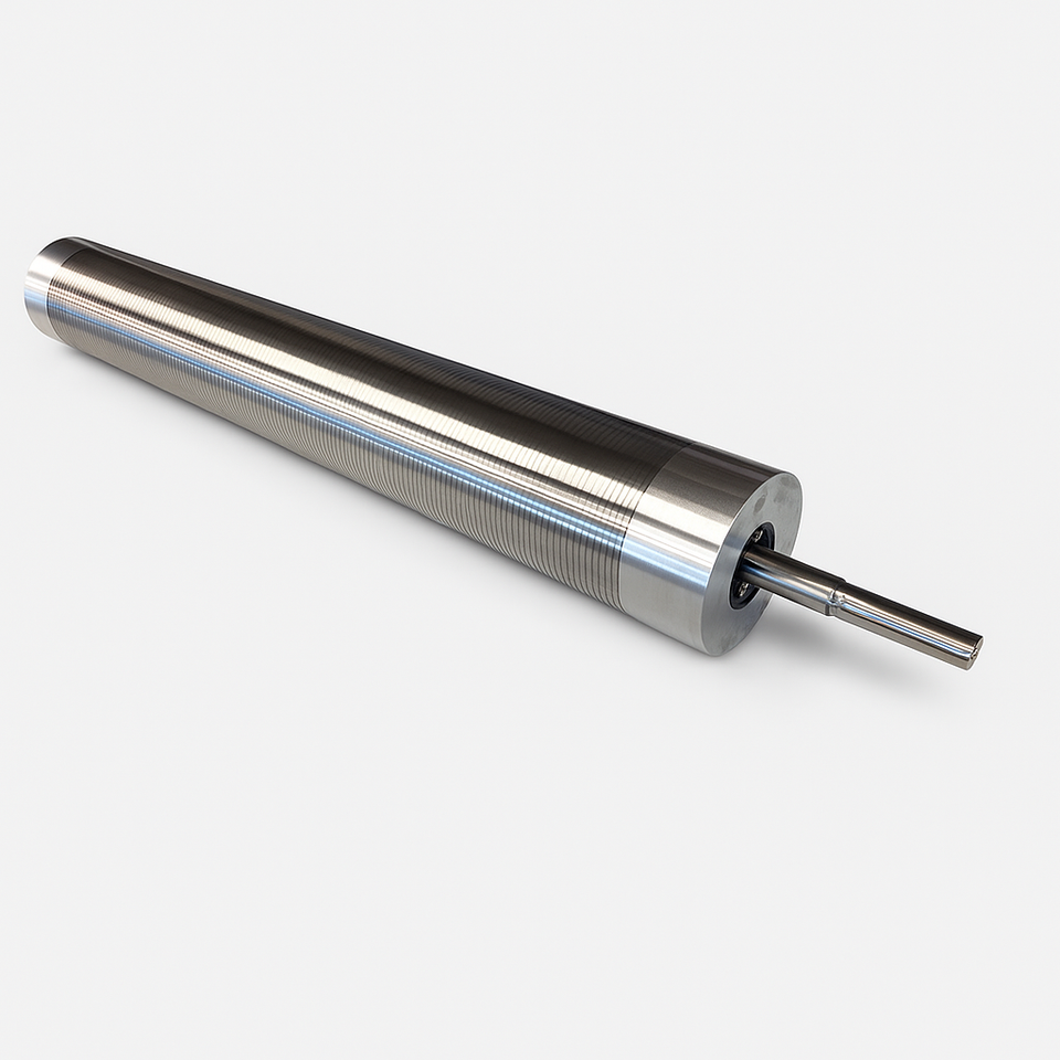 Ein Primärmagnetsystem zur Ab-scheidung von Eisenverunreinigungen aus Materialien. Der innere magnetische Kern ist der wichtigste Teil der Walze. Die Trommel besteht aus rostfreiem Edelstahl. Die magnetische Förderband-walze ist ein Bestandteil eines Förderbands. Die magnetische Walze ersetzt die klassiche Antriebs- oder Umlenkwalze.